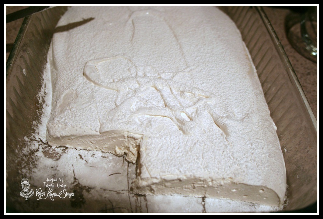 With a sieve, generously dust an 8 by 12-inch nonmetal baking dish with confectioners' sugar. Pour the marshmallow mixture into the pan, smooth the top, and dust with more confectioners' sugar. Allow to stand uncovered overnight until it dries out.