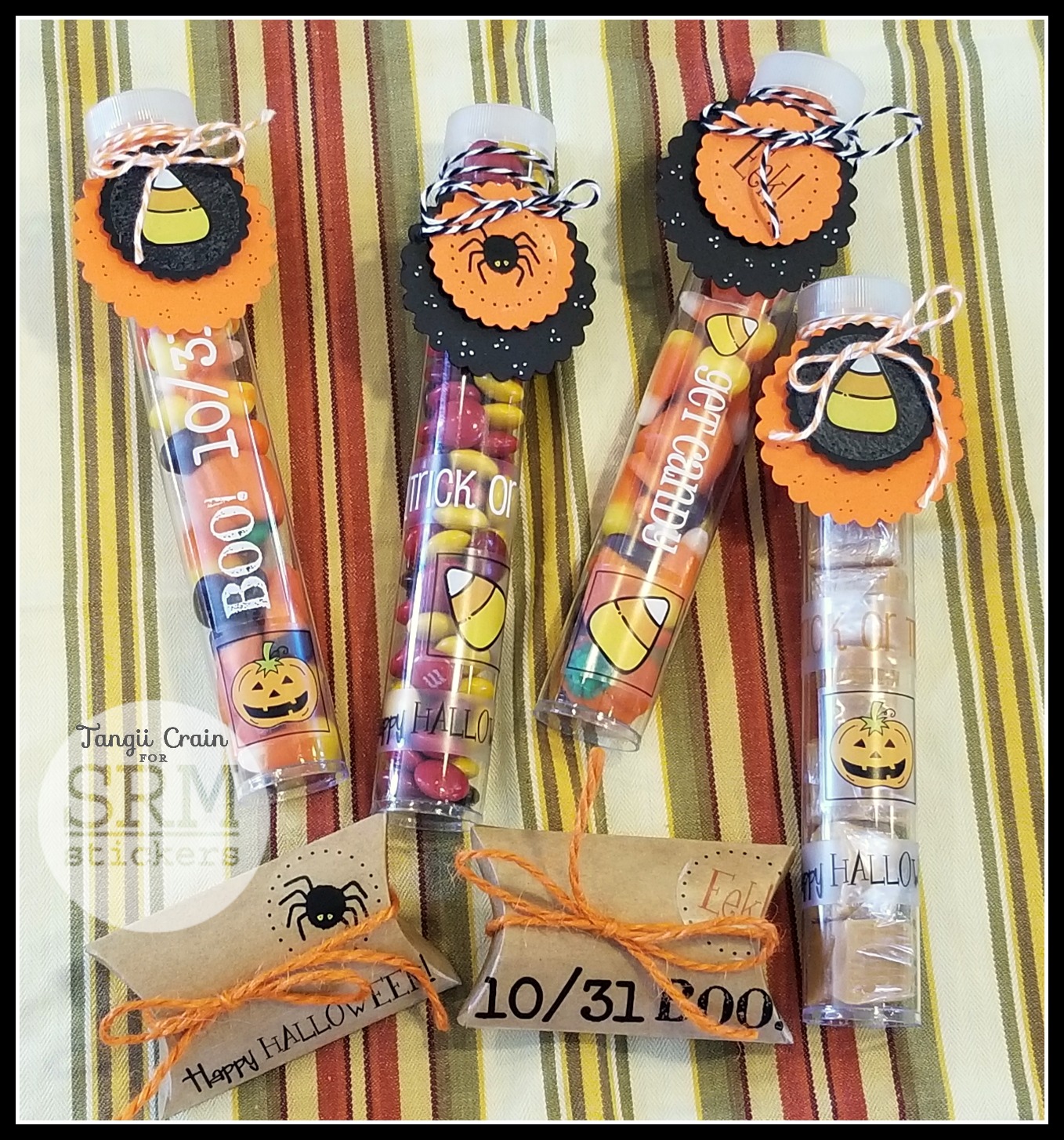Hey yall, I'm back with another fun post for SRM Stickers. For today's post I put together some Halloween goodies for the neighborhood kiddo's. I started out playing with some Clear Tubes and then couldn't really stop myself, lol. and I added some small Kraft Pillow Boxes.